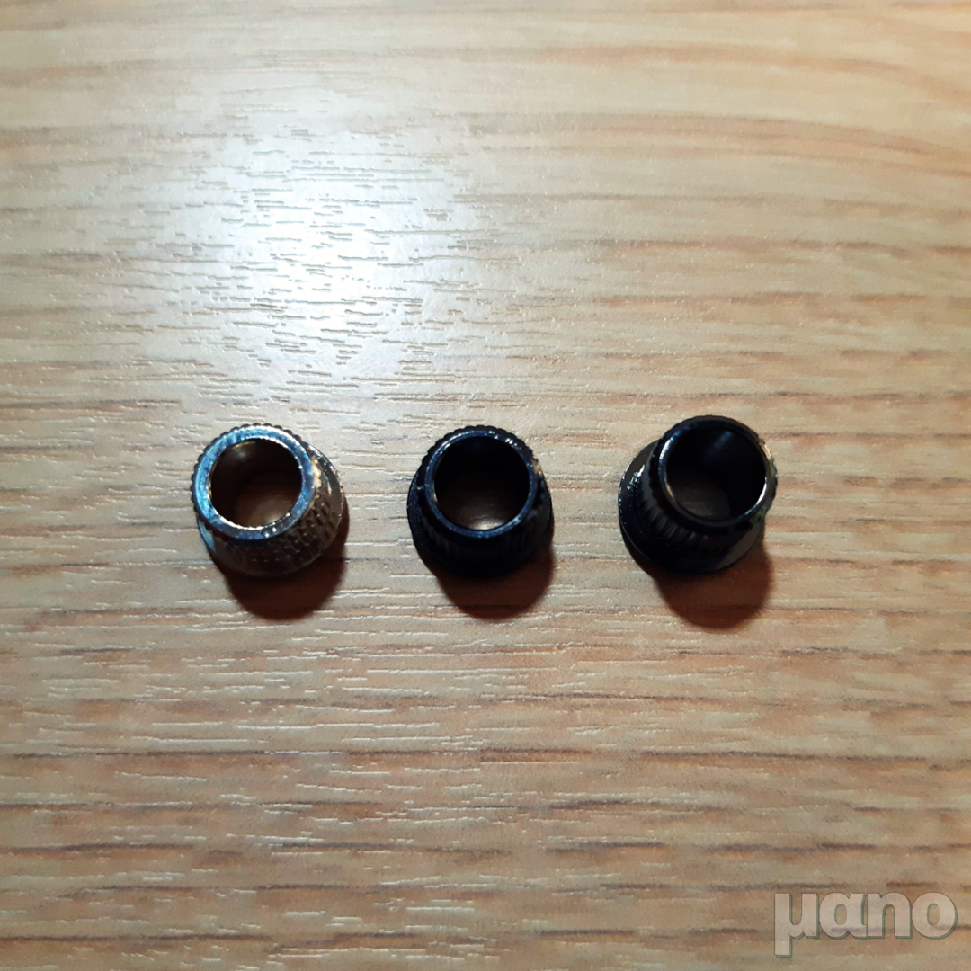 왼쪽부터 순정 부싱, 봉투에 들어있던 작은 부싱, 박스에 끼어있던 큰 부싱입니다. 사실 맨 오른쪽이 좀 더 안정적으로 장착되기 때문에 빈티지 타입에 비해 장점이 있습니다만...