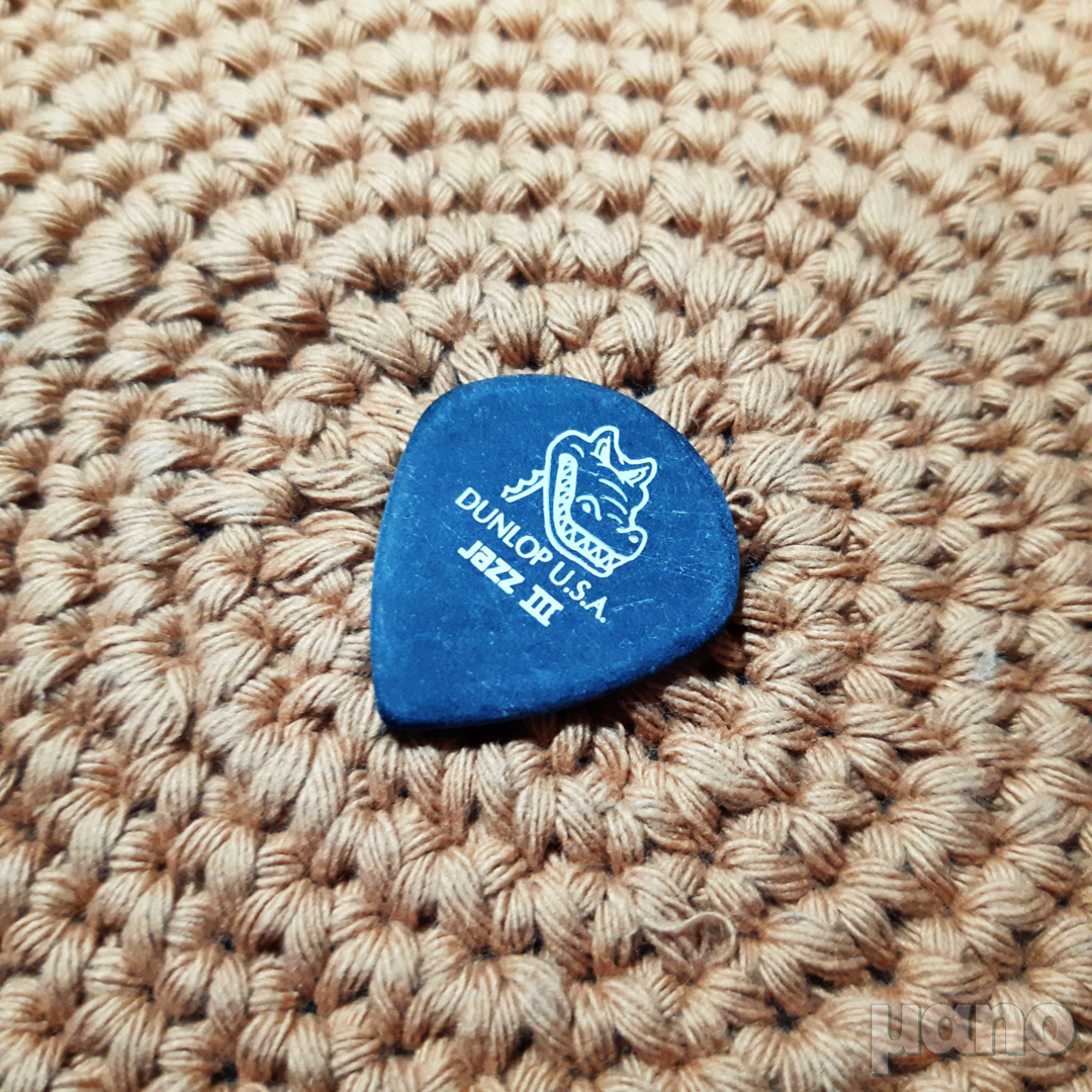 저는 던롭 재즈 Ⅲ 피크를 애용하는 편입니다. 이유는 그냥 손에 잘 맞아서요. 처음 재즈 피크를 시도해봤을 때 목적은 '피킹 하모닉스를 좀 더 편하게 할 수 있지 않을까?' 하는 막연한 생각에서였는데, 실제로 피킹 하모닉스에는 별 도움이 안 됐지만, 재즈 Ⅲ 피크를 손에 쥐었을 때 검지 첫 번째 마디에 딱 맞아 들어가는 느낌이 아주 좋더군요.