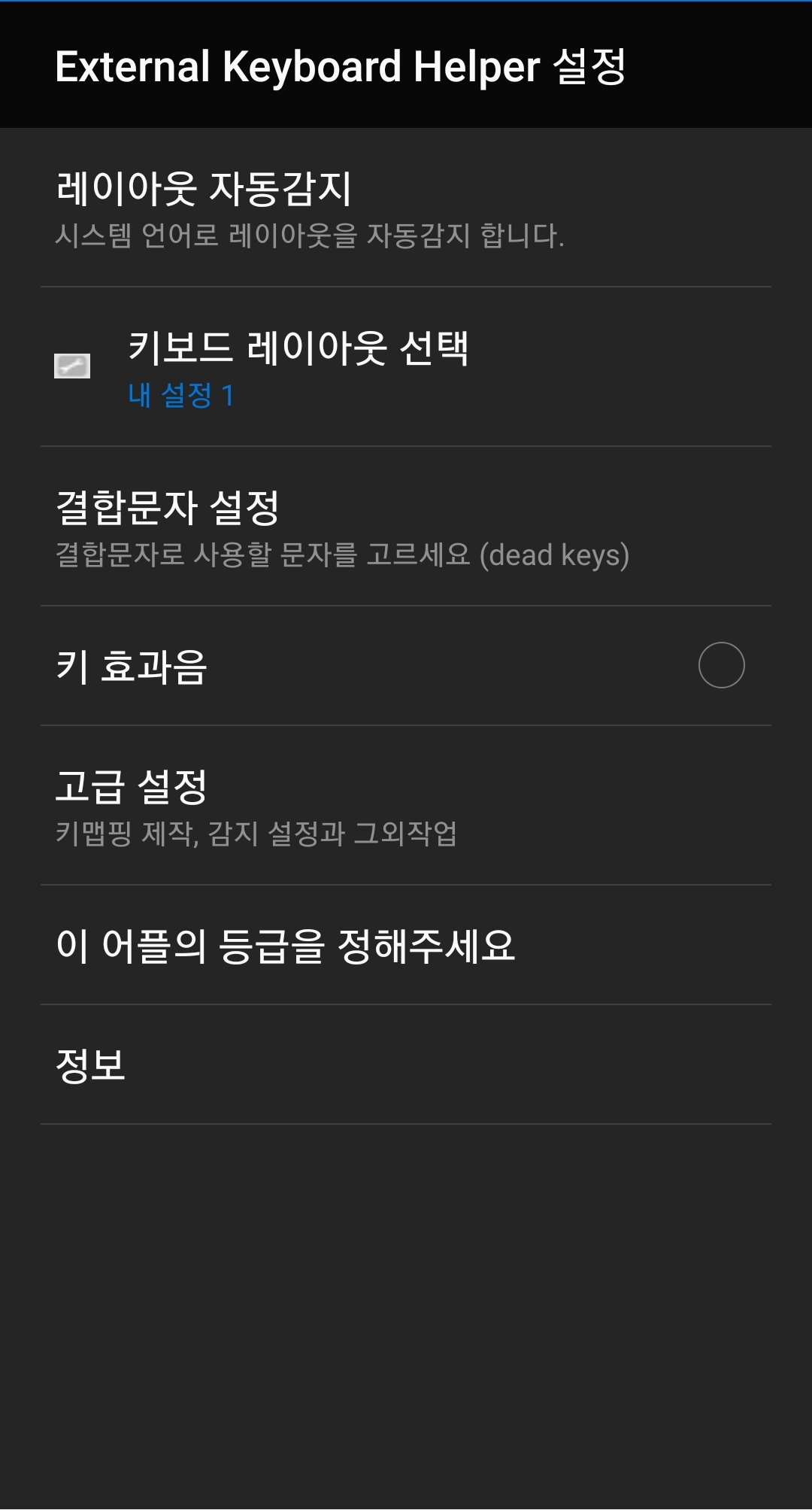 다만 듀가드에서 제공하는 제우스 엔진이 PC 전용이기 때문에, 안드로이드 스마트폰에서 블루투스 키보드를 편리하게 활용하기 위해서는 다른 키맵핑 프로그램이 필요한 것 같습니다. 저는 External Keyboard Helper (EKH) 프로 버전을 구매해서 사용하고 있는데, 이 어플리케이션 정말로 좋은 것 같습니다. 다음에 기회가 된다면 자세한 사용법은 따로 정리해보도록 하겠습니다. 간단히 요약을 하자면 우 Alt 키를 한/영 전환처럼 사용하고, 일부 Fn + 숫자키로 멀티미디어 제어, 좌 Alt + 임의의 키로 자주 이용하는 어플리케이션 단축키를 지정하거나, 자주 사용하는 특수문자들을 편리하게 입력할 수 있도록 했습니다. 특히 키맵핑이 굉장히 자유로운 것이 장점입니다. 윈도우 기반으로 이런 프로그램을 찾고 있는데, 못 찾고 있습니다.