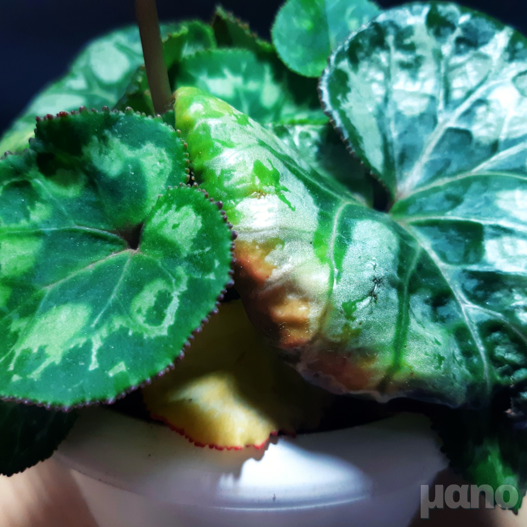 아무튼 저는 작년 5월 정도에 시기를 놓쳐서 많은 잎이 노랗게 변한 뒤 시클라멘을 실내로 들였고, 일반적인 LED 조명을 이용해 보광을 하며 여름을 났습니다. 거의 마지막까지 잎 5장 정도가 살아있었고, 막판에 2장 남기고 다 시들더군요. 그리고 새 잎이 나기 시작해 겨울 동안 꽃을 볼 수 있었습니다. 아쉬운 점이 있다면, 새 잎이 한창 나는 시기에 진딧물에 시달려서 잎 모양이 그다지 예쁘지 않게 되었습니다.