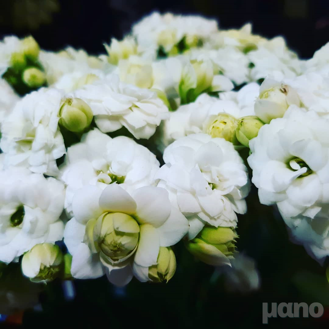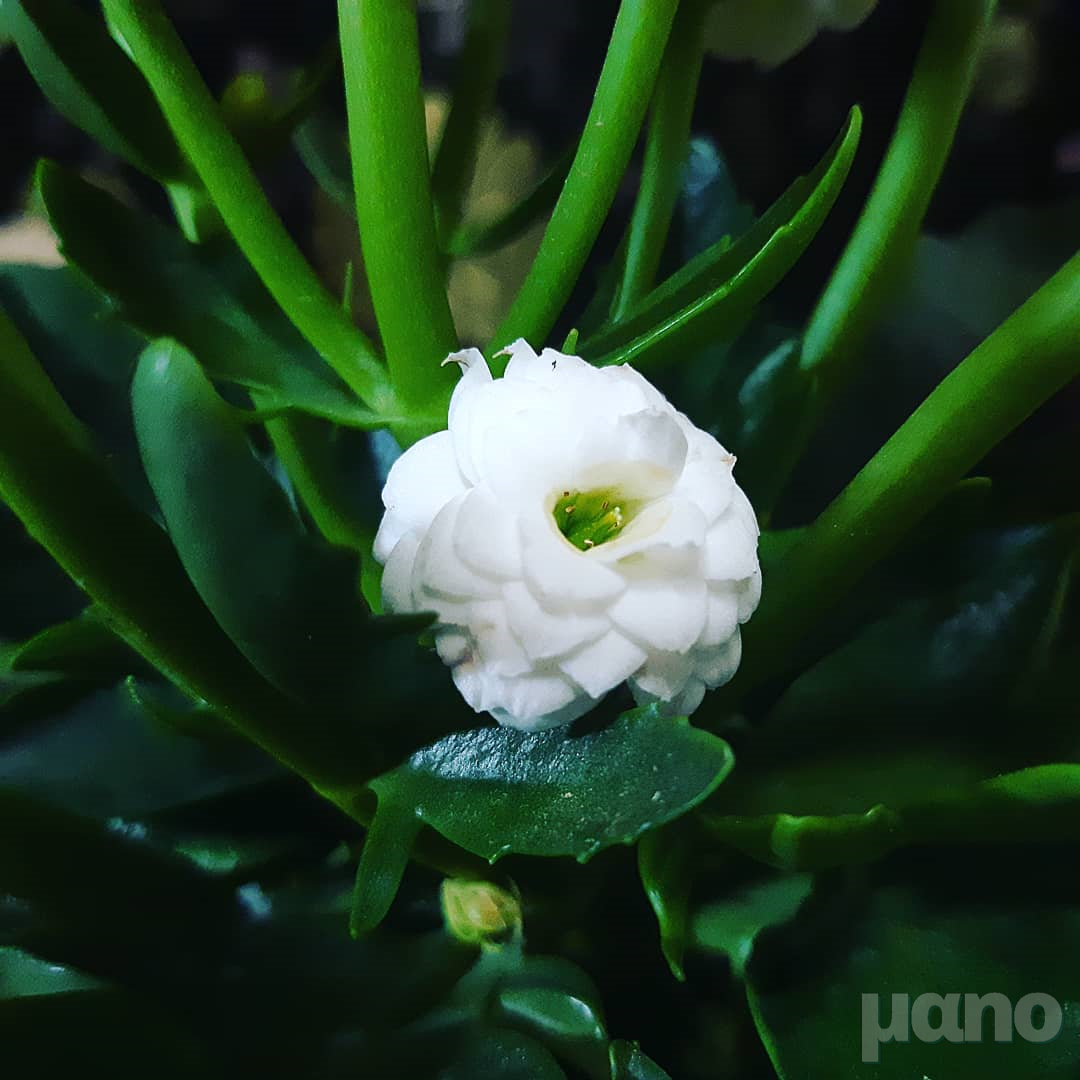 칼랑코에 꽃 색깔은 개인적인 감상을 솔직히 말하자면 좀 유치한 감이 있는 원색 톤이 많습니다. 빨강 주황 노랑 분홍... 그런데 부케를 연상시키는 초록빛이 살짝 도는 흰색에 풍성한 겹꽃이 꽤나 예쁘면서도 우아한 느낌을 주길래 방 안에 두면 괜찮겠다 싶어서 들여놓게 되었습니다. 요즘은 파스텔톤이나 투톤 등등 세련된 느낌을 주는 칼랑코에 품종도 많아진 것 같아서 한 번 들여놓는 것도 괜찮을 것 같아요.