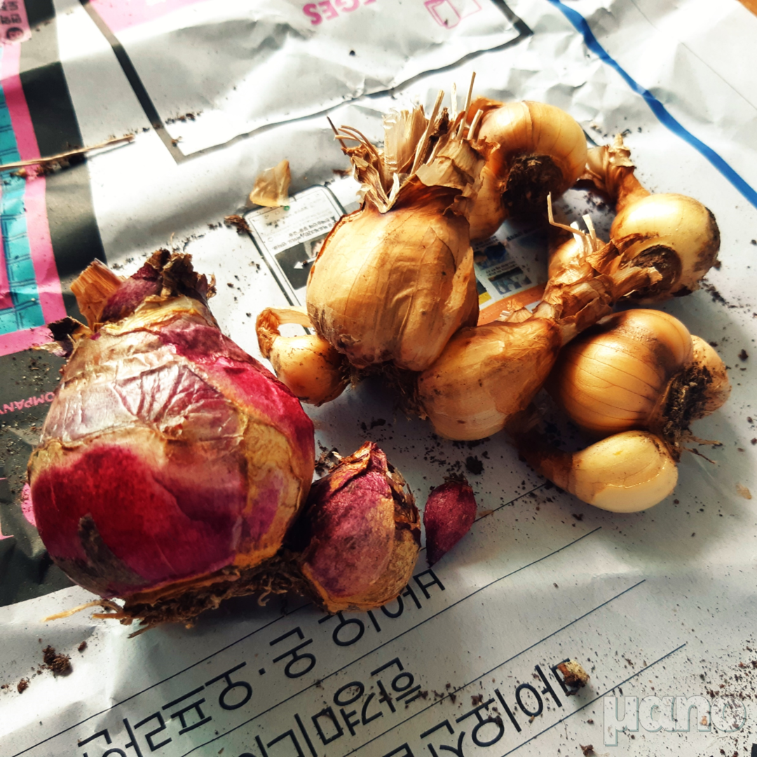 봄 동안 예쁜 꽃을 보여주던 수선화와 히아신스 구근을 캤습니다. 사실 작은 화분에서 키우던 거라 캐는 것보다는 흙 털어내기에 가깝긴 했습니다만.