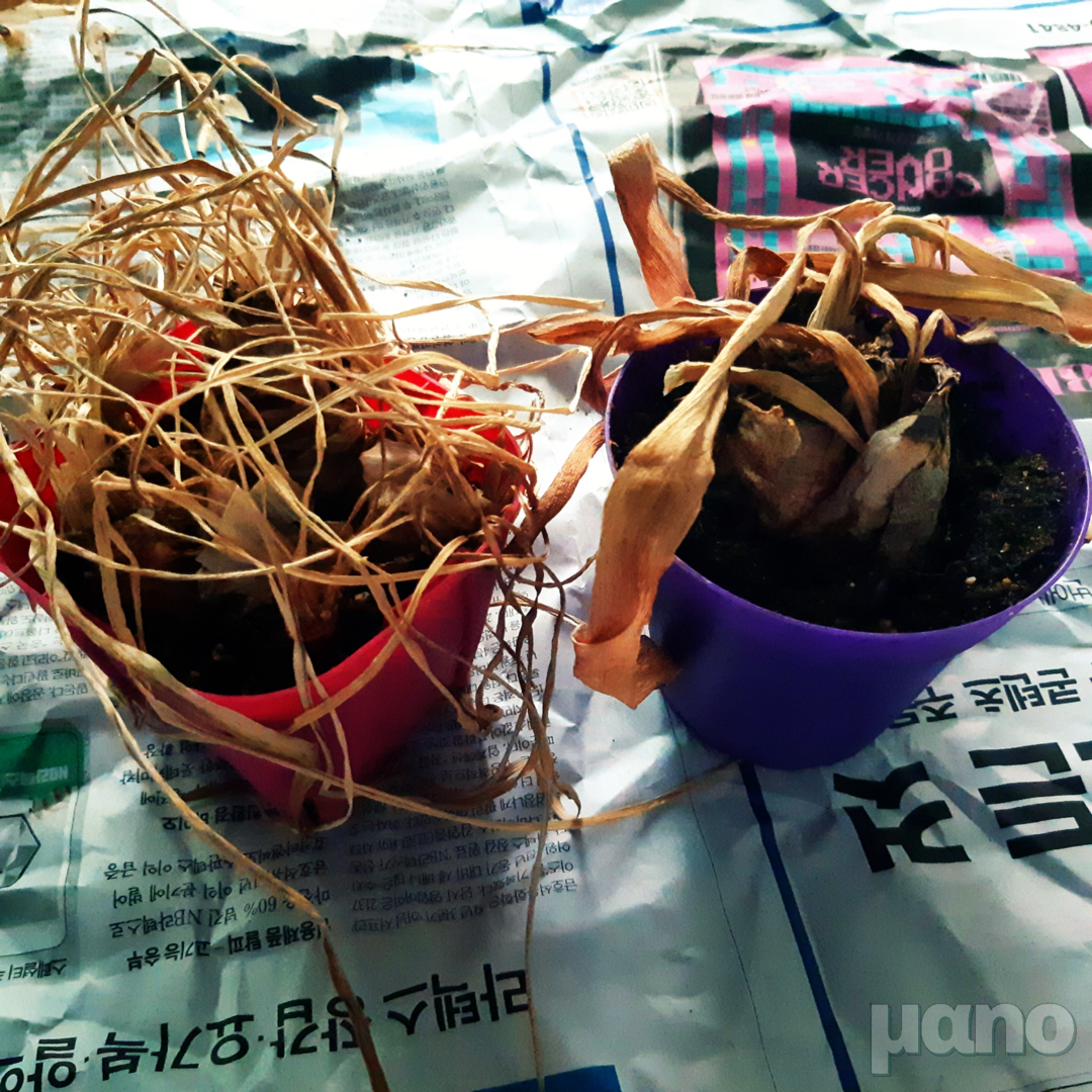 봄 동안 예쁜 꽃을 보여주던 수선화와 히아신스 구근을 캤습니다. 사실 작은 화분에서 키우던 거라 캐는 것보다는 흙 털어내기에 가깝긴 했습니다만.