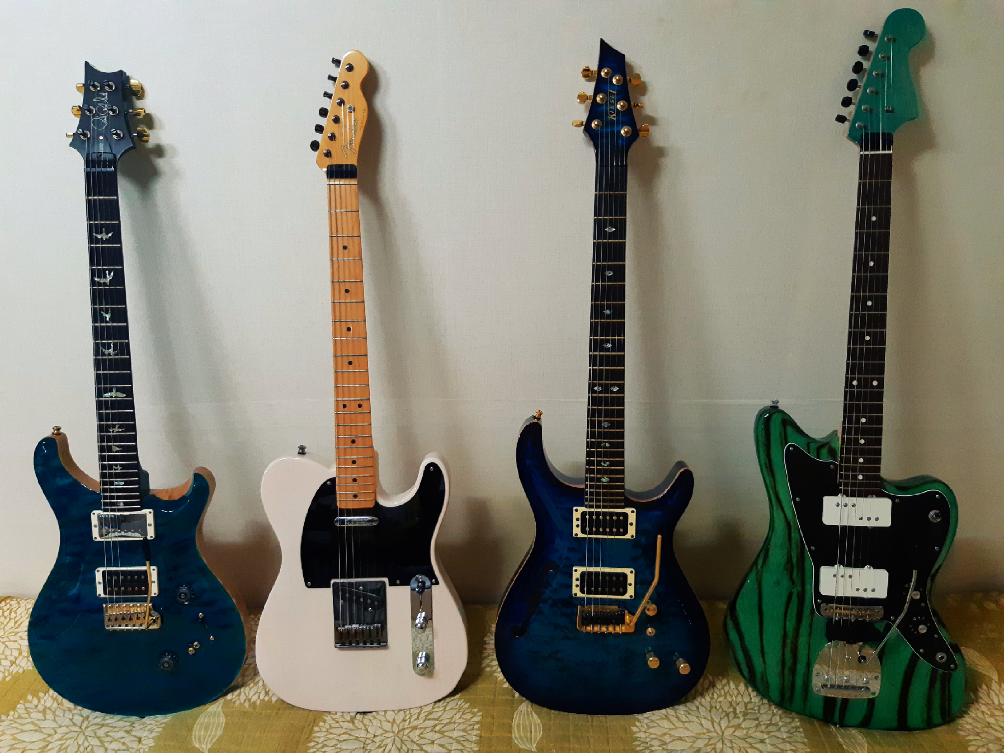 왼쪽부터 PRS Wood Library Custom 24-08 '파랑이', Fender Made in Japan Hybrid 50s Telecaster '하양이', Kiesel SH6 '람이', Psychederhythm Psychomaster '초록이'입니다. 기타 이름을 짓는 원리는 에릭 클랩튼의 브라우니(Brownie) · 블랙키(Blackie)와 같습니다. 순서는 영입한 순서입니다. 람이와 초록이는 각각 작년 5월, 작년 11월입니다만, 아직 포스팅을 하지 못했네요. 조만간 이야기를 한 번 해보도록 하죠.