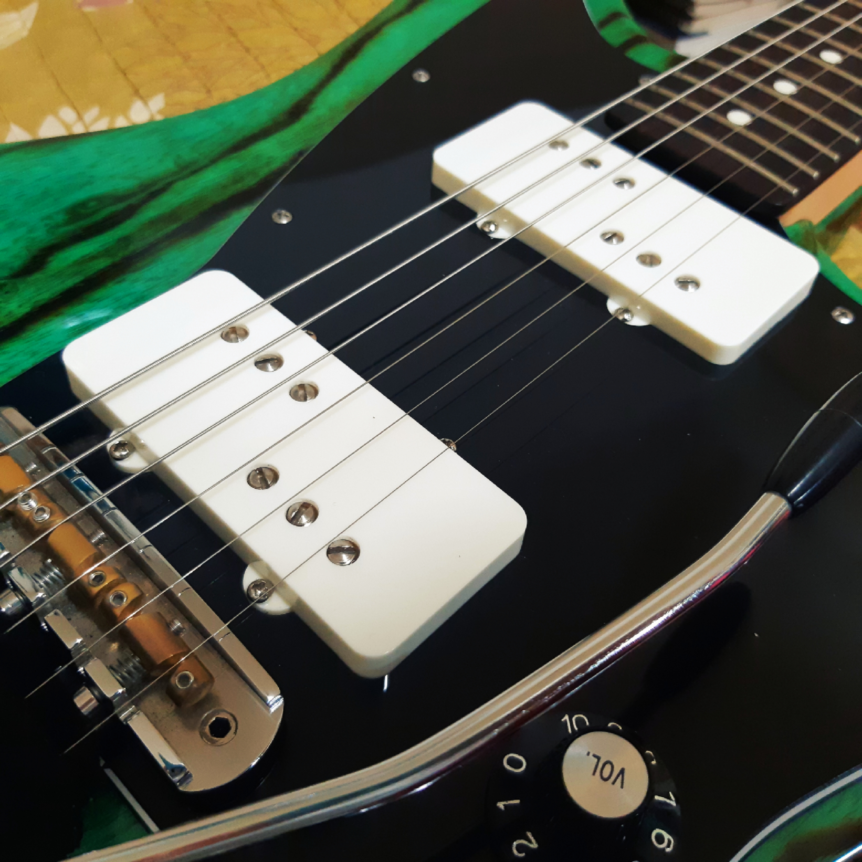 원래 Psychederhythm 이 이름은 볼 때마다 본토 발음으로 사이케데리즈무라고 읽어야 할지, 한국인이니까 사이키델리듬으로 읽어야 할지 고민된단 말이죠 Psychomaster에 순정으로 장착되어 있는 픽업은 캐나다의 Sigil Pickups가 Psychederhythm만을 위해 특별 제작하는 Psychomaster Modern입니다. 분명 아주 좋은 픽업이었습니다만, 뭔가 큰 틀에서 텔레캐스터와 겹치는 것 같은 느낌 때문에 고민이 늘어가던 시기에 펜더 CuNiFe Wide Range Jazzmaster 픽업을 보게 된 겁니다.