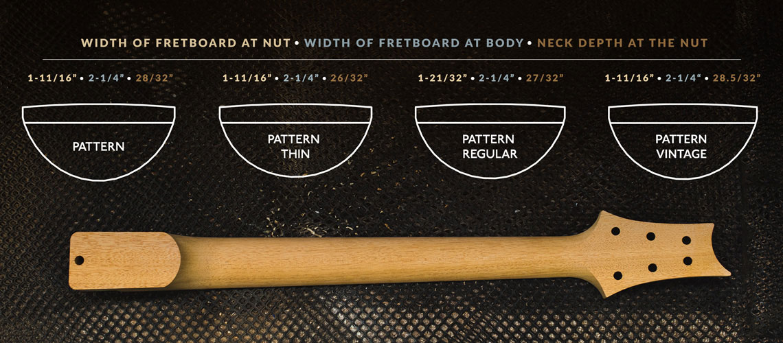 PRS의 넥 쉐입은 존 써나 탐 앤더슨만큼 다양한 옵션이 있지는 않습니다. 2011년 명칭의 변경이 있긴 했지만 Custom 24의 경우 얇은 넥(Wide Thin → Pattern Thin)과 레귤러 넥(Regular → Pattern Regular)의 두 가지 옵션 중 하나를 선택할 수 있습니다. 그 외 Custom 22 같은 기타에서 선택할 수 있는 Pattern(구 Wide Fat)넥과, 최근 McCarty에 도입된 Pattern Vintage(Pattern넥을 더 두껍게 개량했다고 합니다)가 있습니다. 저는 얇은 넥을 좋아합니다. Pattern Regular넥을 잠깐 만져볼 기회가 있었는데, 7프렛 위쪽에서 바레 코드 잡을 때 엄지와 검지 사이 근육이 아팠다는 느낌입니다. 얇은 넥에 적응해서 그런 것도 있겠지만, 어쨌거나 저는 레귤러 넥 보다는얇은 넥을 고르겠습니다.