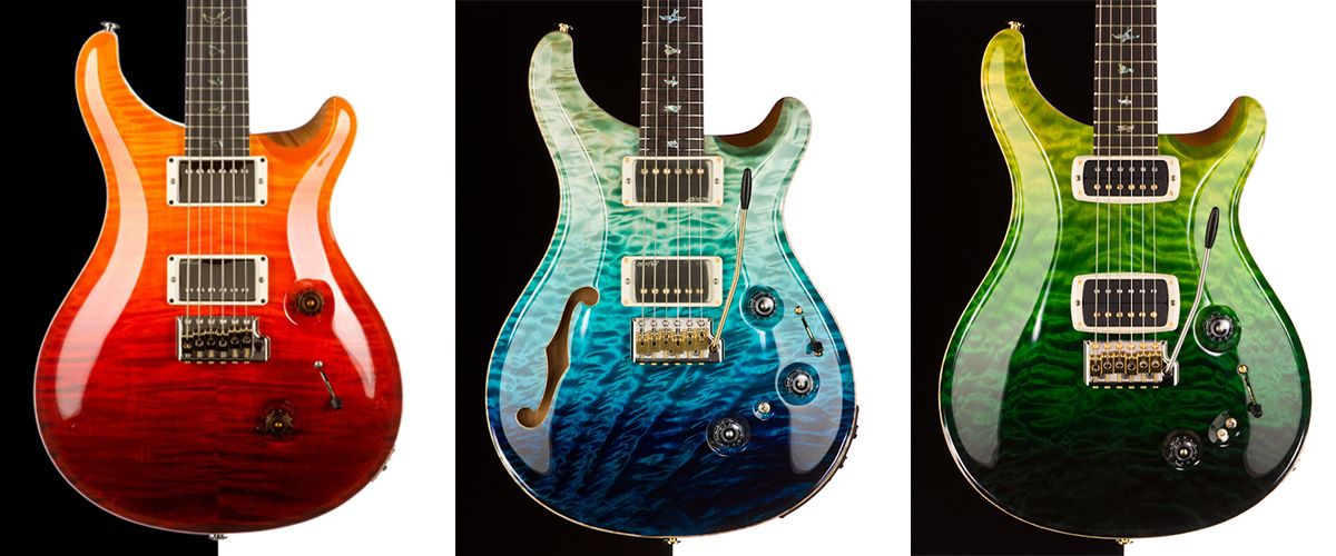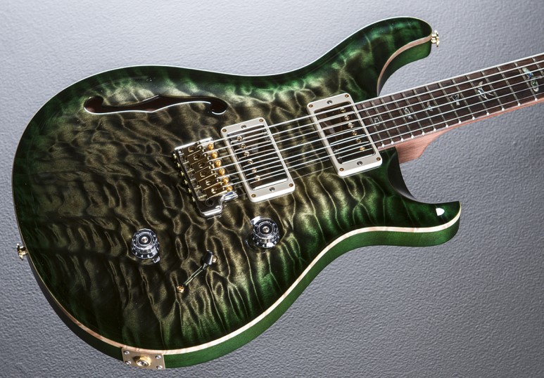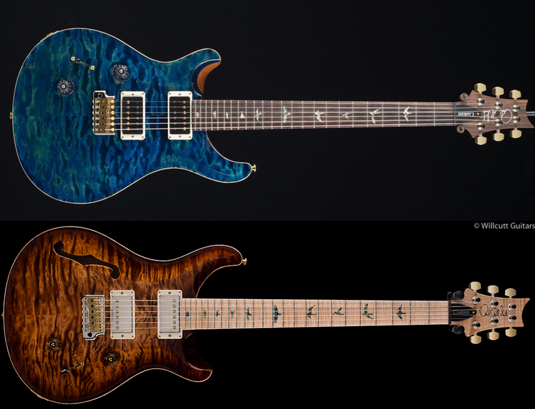 그 외 한정판으로 2년에 한 번 정도씩은 보이는 왼손잡이 옵션, 세미 할로우 바디 옵션이 있습니다. 저는 왼손잡이가 아니라서 레프티 옵션은 패스하고, 세미 할로우 바디에 대해 살펴보자면, 음... 바이올린을 연상시키는 f홀이 디자인적으로 훌륭하다는 생각이 듭니다. 세미 할로우 바디는 바디가 공명을 해서 더 어쿠스틱한 느낌의 톤을 내주는 대신 하이게인에서는 솔리드 바디 기타에 비해 밀어붙이는 느낌이 부족하다던가, 라이브에서 하울링이 발생한다거나 하는 약점이 있다고들 합니다. PRS는 기타 참 잘 만드는 회사라 세미 할로우 바디라고 해도 라이브 현장에서 못 쓰는 물건을 만들었을 것 같지는 않습니다만, 역시 별로 끌리지는 않습니다. 기타가 20대 정도 있다면 한 대 정도는 세미 할로우여도 좋을 것 같습니다만, 딱 한 대 들여야 한다면 그냥 평범한 걸로 하겠습니다. 아, 왠지 세미 할로우에 피에조 옵션을 채택하면 꽤 괜찮은 기타가 나올 것도 같습니다. 이건 적어도 프라이빗 스톡 오더를 넣든지 해야겠지만요.