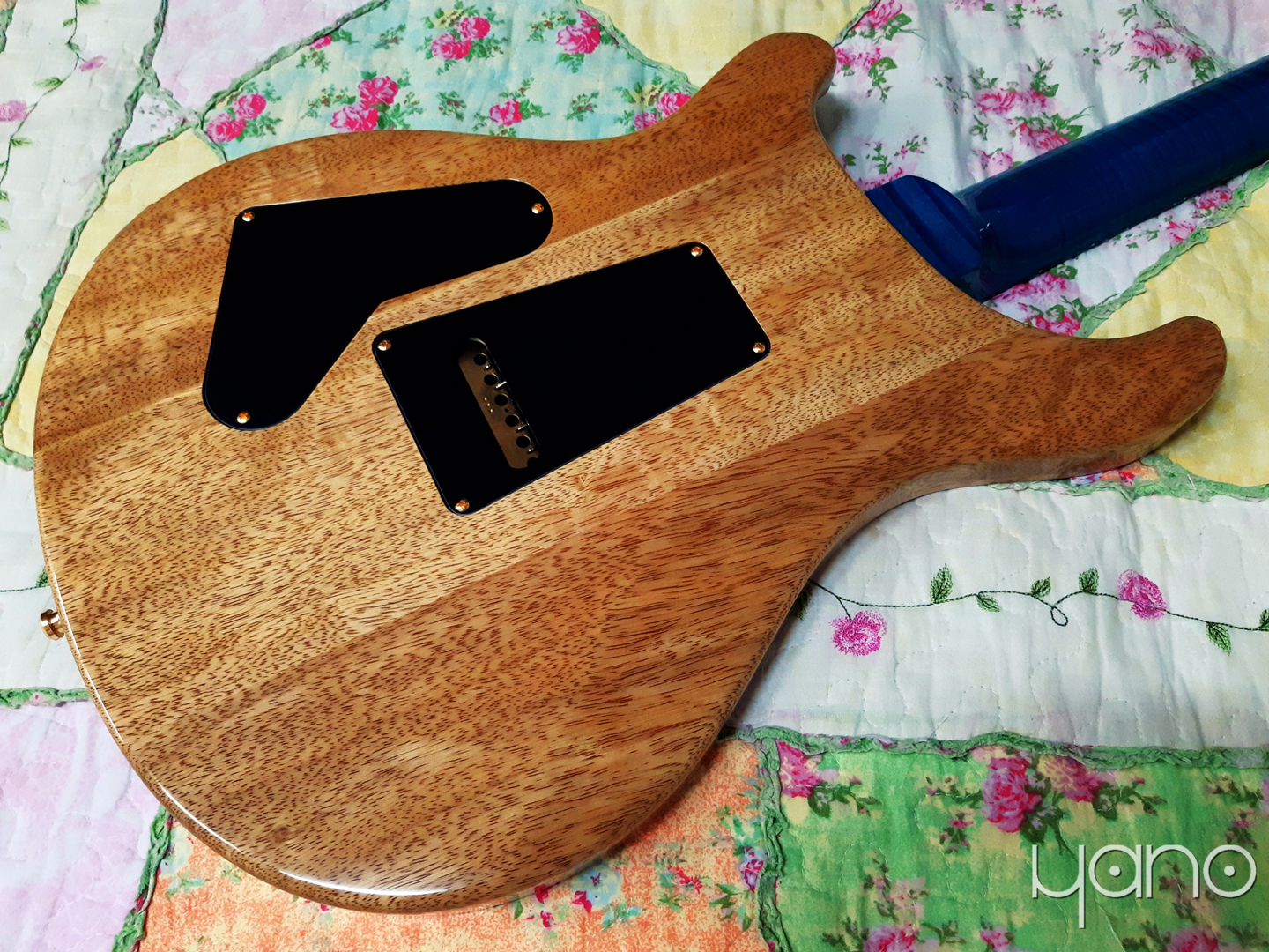 1피스 메이플 탑도 고를 수 있습니다. PRS Guitars 공식 홈페이지에 따르면, '1피스 메이플 탑을 쓰려면, 매우 커다랗게 자란 단풍나무를 베어야 하고, 그런 단풍나무를 베어도 막상 우리가 원하는 뚜렷한 무늬가 넓은 면적에 분포하는 경우는 드물다. 2피스 탑의 경우 더 작은 나무를 이용할 수 있다. 우리는 탑의 북매치에 최대한 신경 쓰고 있다'라고 쓰여 있습니다. 아무튼 이 1피스 탑 옵션은 대부분의 기타 제작사에서 없거나 있어도 매우 비쌉니다. 가끔 코어 라인 기타에서도 1피스 탑이 보이는데, 이건 '어느 정도의 자유를 제공받은 피고용자'가'이건 굳이 쪼개 쓸 필요 없을 정도로 커다란 단풍나무 판때기인데...' 싶으면 1피스 탑으로도 기타를 만든다고 합니다. 개인적으로 중간에 갈라진 자국이 있는 탑보다는 하나로 이어지는 퀼티드 탑이 더 완벽하게 아름답다는 느낌입니다. 자주 볼 수 없는 옵션이라는 게 아쉽고, 새로 들인 기타 '파랑이'를 선택하게 된 결정적 이유가 이 1피스 퀼티드 탑입니다.