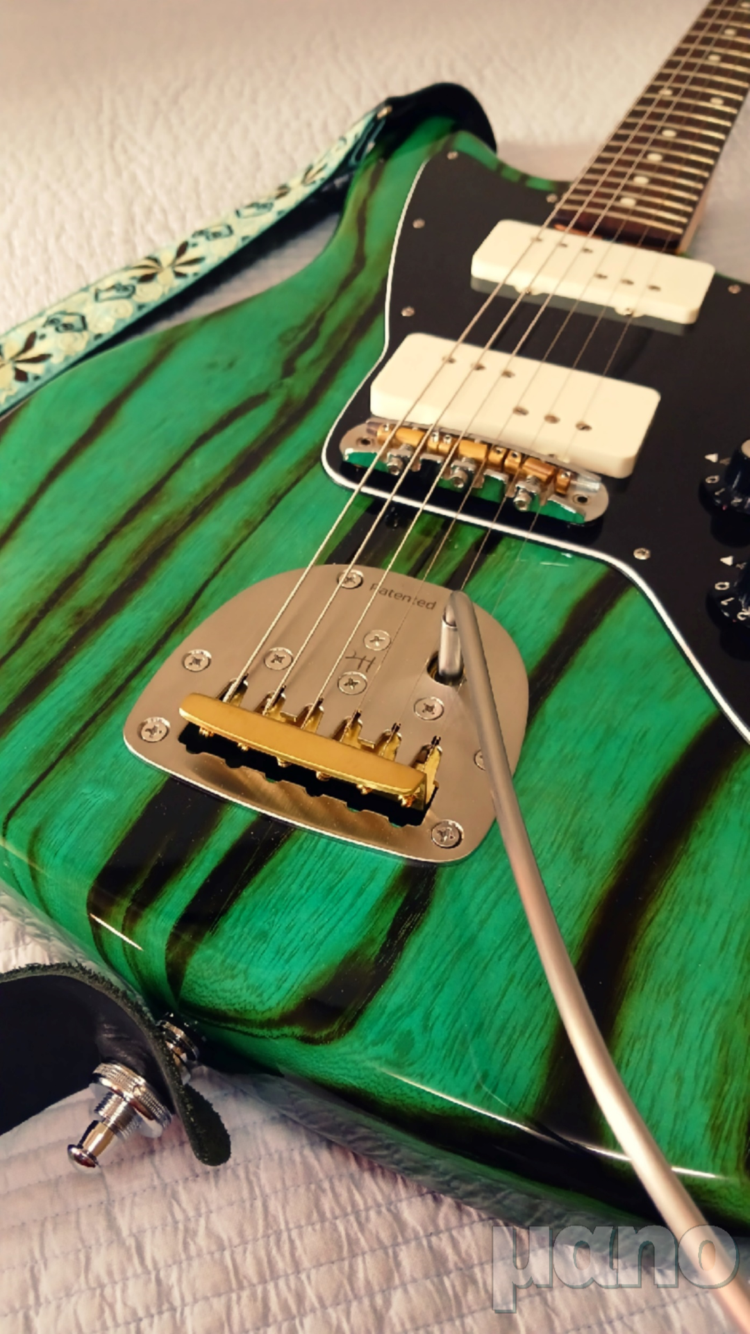 소위 ‘재씨 형제’는 정말 매력적인 악기이기는 합니다만, 실제 활용을 어렵게 만드는 여러 가지 문제들이 있어서 많은 분들이 부품 교체나 개조를 고려하시리라 생각합니다. 버즈 스탑 바라던가, 머스탱 브릿지라거나, Mastery나 Descendant 같은 서드파티 업체들의 ‘개량된’ 파츠들이라거나… 그리스의 Halon Guitarparts는 상대적으로 잘 알려지지는 않았습니다만, 이번에 사용해 본 Patented Vibrato에는 다양한 기능들이 있고, 무엇보다 트레몰로 암을 두 가지 방식으로 장착하고 활용할 수 있는 기능성이 ‘첫인상’ 단계에서 너무 마음에 들어서 좀 성급한 감이 있지만 사용기를 쓰게 되었습니다.