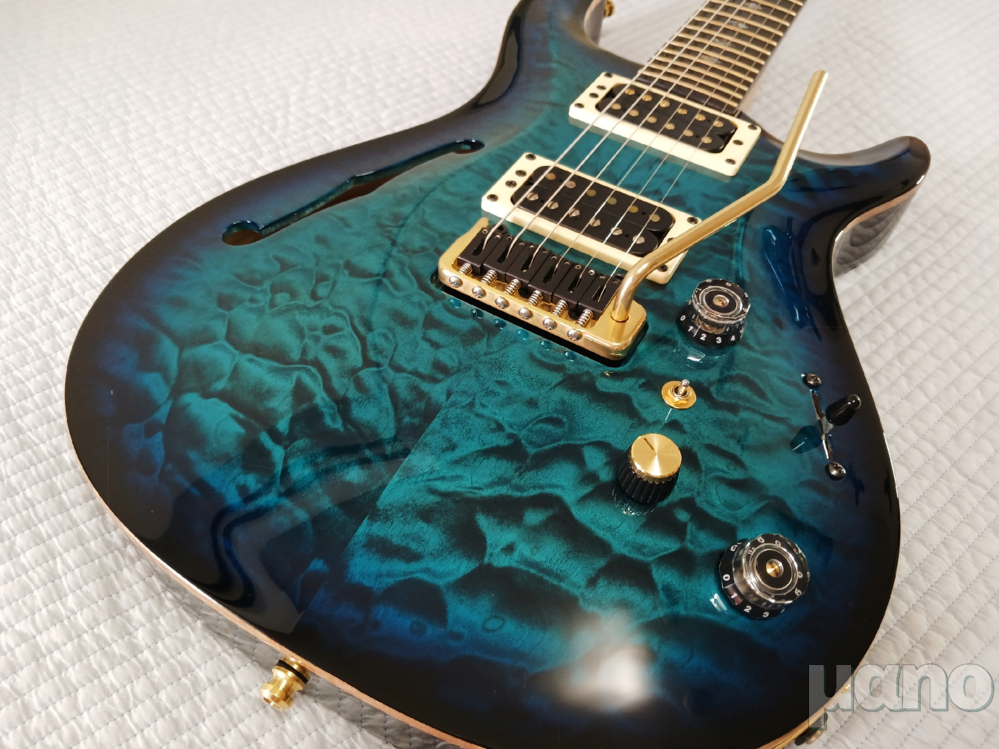 결과적으로 키젤 베릴륨 픽업 세트만 그대로 두고, 마그네틱 쪽은 PRS Custom 24에 쓰는 것과 같은 포텐셔미터·커패시터를 사용해 Ibanez 스타일 HH 5 way 배선을 했습니다. 피에조 쪽은 기본 장착 부품인 그라프텍 고스트 픽업 새들만 그대로 두고 그 악명 높은 스트링 세이버 새들입니다. 국내 커뮤니티에서는 부모의 원수가 사용한다 그래도 일단 말리겠다는 수준으로 까고 보는 것이 밈이 된 것 같은데, 모 리페어샵 사장님의 블로그 포스팅에서 본 ‘일렉기타에 통기타 브릿지 장착한 느낌’이라는 표현이 딱 맞는 것 같습니다. 개인적으로 딱 그 용도를 생각하고 커스텀 오더했던 거라 아주 만족하고 있습니다. 키젤 자체 프리앰프를 포함한 모든 피에조 회로 부품을 제거하고 그라프텍의 것으로 교체했습니다. 이 모든 과정에 반 년 정도의 시간이 걸렸고, 지금은 아주 만족하고 있습니다. 아이바네즈 스타일 HH 5단 배선과 피에조 픽업까지 해서 거의 모든 상황에 대응할 수 있는 ‘만능 기타’ 임은 분명합니다. 스케치나 가녹음에서는 거의 ‘람이’ 한 대만 사용해서 모든 기타 트랙을 작업하고는 합니다. 이상하게도 최종 결과물에서는 통기타 소리만 남기는 합니다만… 포큐파인 트리의 영향을 받아 〈날개〉 이래로 일렉트릭 기타의 마그네틱 + 피에조 신호를 블렌딩하는 트릭을 자주 사용하는 입장에서 애정을 갖고 많이 사용하는 악기입니다. 여기에 관해서는 〈시스투스〉 포스팅에서 자세하게 설명해놨습니다.