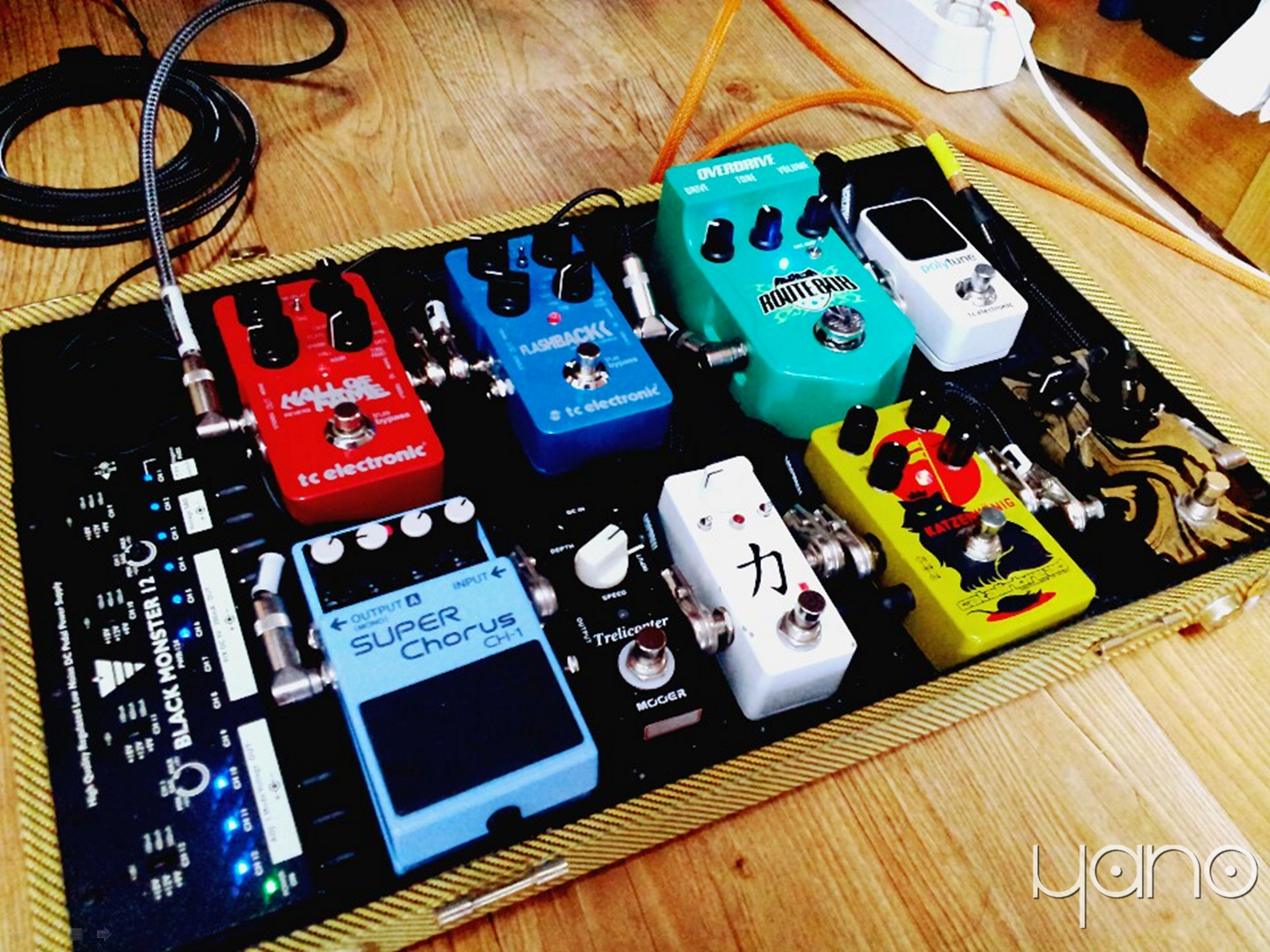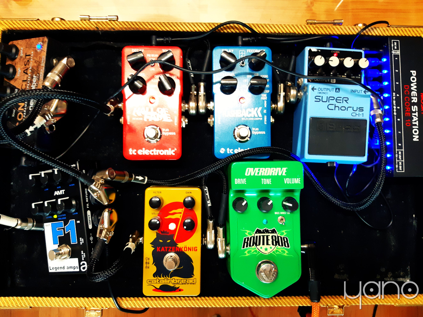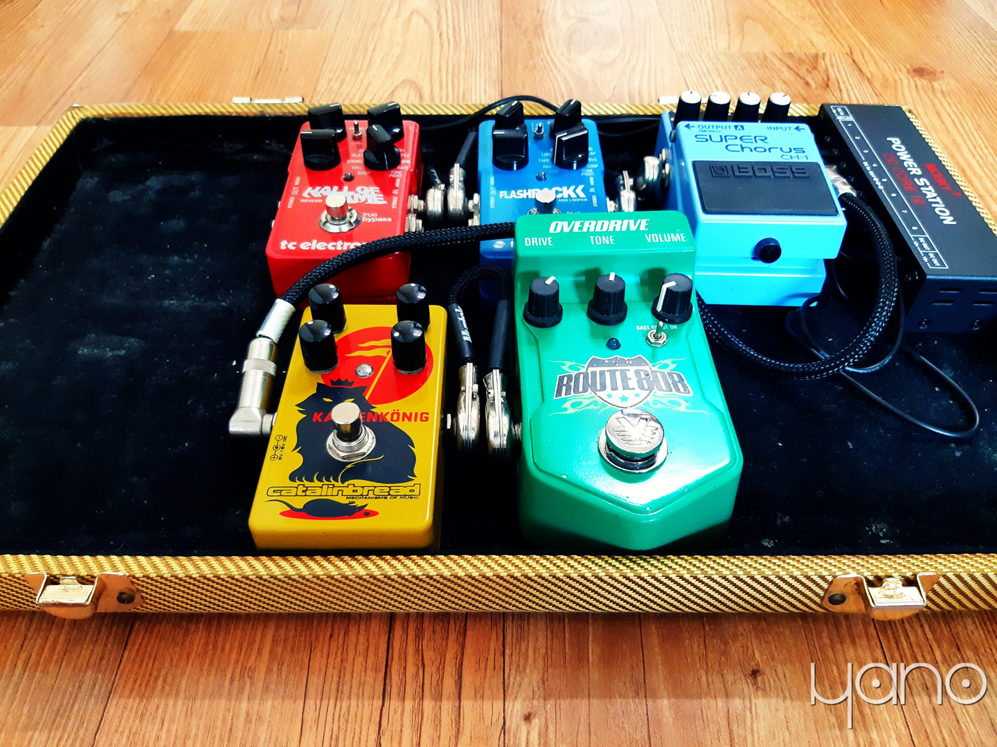 Mosky Power Station DC Core 10, Visual Sound Route 808(Overdrive, 현재 단종), Catalinbread Katzenkönig(Distortion/Fuzz), Boss Super Chorus CH-1, TC Electronic Flashback Delay and Looper(현재 업그레이드되면서 단종), TC Electronic Hall of Fame Reverb(현재 업그레이드되면서 단종).