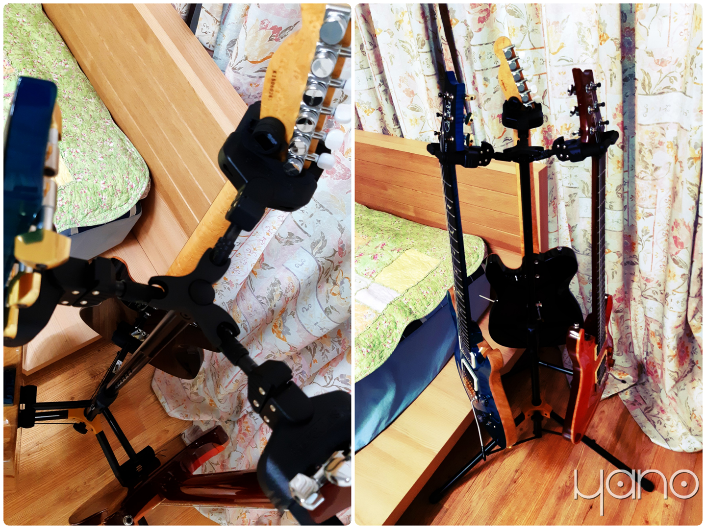 기타 3대가 걸려있는 모습을 보기만 해도 뿌듯합니다. 스탠드에 대해서는 특별히 설명할 필요 없지 않나 싶습니다. 허큘리스는 예전부터 애용했었는데, 무리하게 여기저기 들고 다니다가 부숴먹고, 기타 사면 끼워주는 급의 A자형 스탠드를 구해서 쓰고 있었었습니다. 결론은 역시 기타는 걸어놔야 한다는 것? 매일 같이 연주하는데 하드케이스에 넣었다 뺐다 하기도 애매하고, 현이 계속 장착되어 넥에 장력이 작용하고 있다 보니 A자형 스탠드든 소파든 침대든 세워놓기만 하면 왠지 좀 불안합니다. 안 그래도 장마철이라 습도 관리도 힘든데 말이죠.
