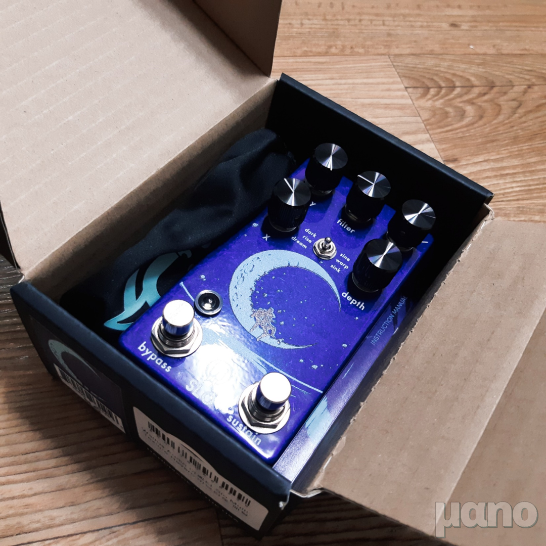 1옥타브 낮은 음을 추가해주는 Dark 모드, Auto-Swell 리버브인 Rise 모드, 비브라토 효과가 가미된 Dream 모드가 있습니다. Sustain 풋스위치를 꾹 밟고 있으면 Decay가 최댓값이 되어 우주로 가는 소리를 낼 수 있습니다. 특별히 Dream 모드에서 Sustain 스위치를 밟으면 LED가 점멸하면서 리버브 서스테인이 극도로 길어지는데, 개인적인 느낌은 이건 정말 어디다 써야할 지 잘 모르겠는 소리가 나더군요.